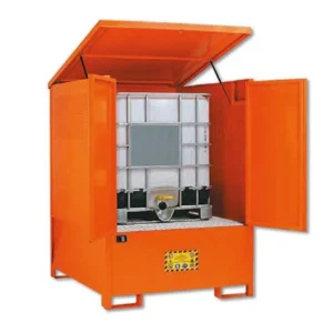Armadi in acciaio per lo stoccaggio esterno di cisterne IBC da 1000 litri. Disponibili anche in versione per infiammabili e acidi.