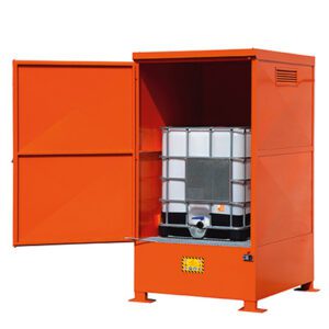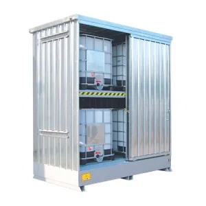 Armadi in acciaio per lo stoccaggio sia esterno che interno di cisterne IBC da 1000 litri contenenti liquidi pericolosi e inquinanti. Le linee complete offrono modelli per lo stoccaggio da 1 a 2 IBC, disponibili anche versioni per lo stoccaggio di liquidi infiammabili. Su richiesta, si realizzano depositi per IBC con rivestimento interno idoneo per acidi e liquidi corrosivi.